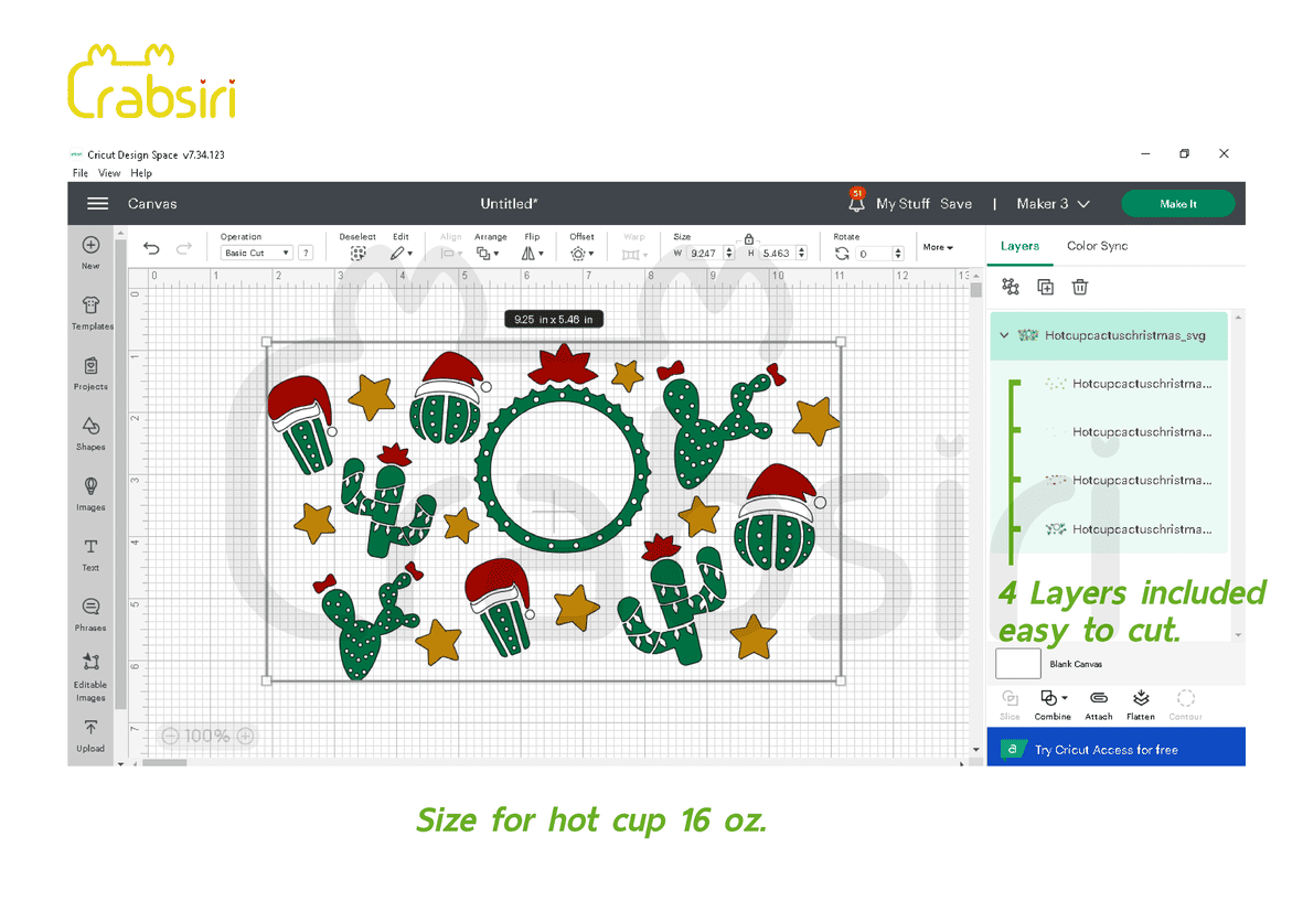 Cactus Christmas Hot cup 16oz SVG