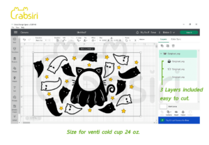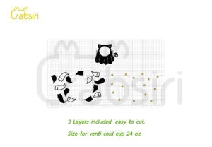 Cat Ghost full wrap for Starbucks Venti cold cup 24 oz. Digital File download : SVG, PNG, DXF.