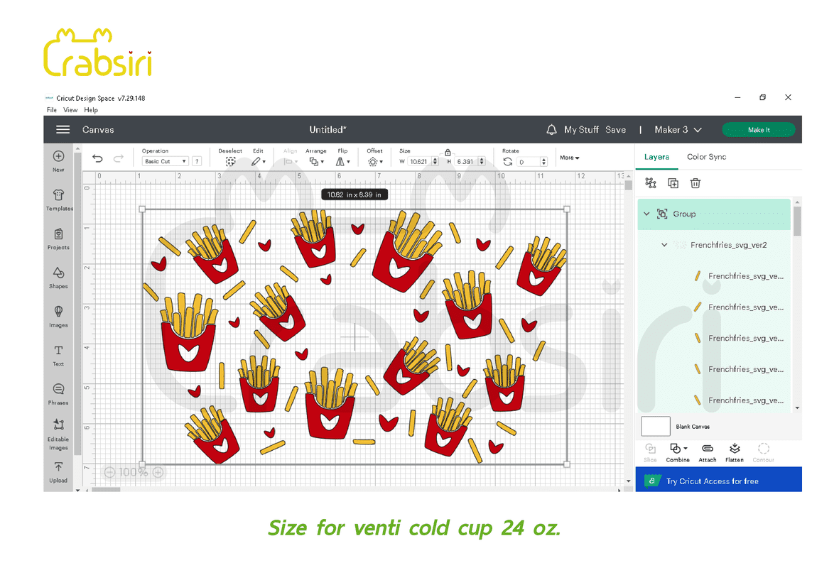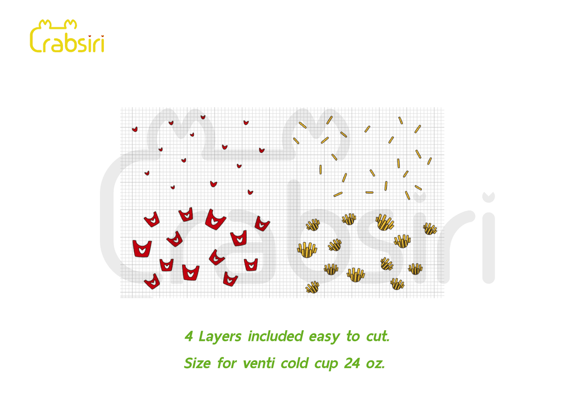 French Fries Venti Cold cup 24oz SVG French Fries full wrap for Starbucks Venti cold cup 24 oz. Digital File download : SVG, PNG, DXF. Size : 10.62 x 6.39 Inches. You must log in to submit a review. Username or Email Address Password Remember Me