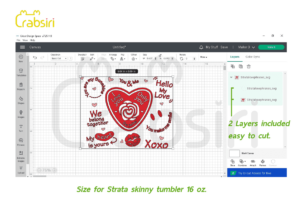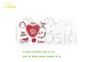 Love Phrases Strata Tumbler 16oz SVG Love Phrases full wrap for Strata skinny tumbler 16oz. ✿ Digital File download : 1 Zipped File >>> 2 SVG, 2 PNG, 1 DXF. ✿ Size : 8.64 x 6.69 Inches. You must log in to submit a review. Username or Email Address Password Remember Me