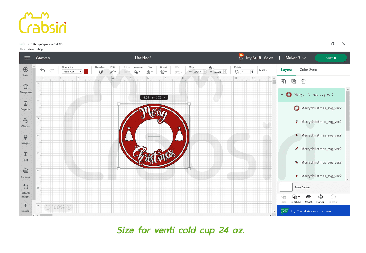 Merry Christmas Venti Cold cup 24oz SVG Merry Christmas full wrap for Starbucks Venti cold cup 24 oz. ✿ Digital File download : 1 Zipped File >>> 2 SVG, 2 PNG, 1 DXF. ✿ Size : 4.044 x 3.722 Inches. You must log in to submit a review. Username or Email Address Password Remember Me