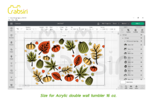 Pumpkin Fall Leaves Acrylic Tumbler 16oz SVG Pumpkin Fall Leaves full wrap for Starbucks Acrylic double wall tumbler 16oz. ✿ Digital File download : 1 Zipped File >>> 2 SVG, 2 PNG, 1 DXF. ✿ Size : 11.083 x 6.486 Inches. You must log in to submit a review. Username or Email Address Password Remember Me
