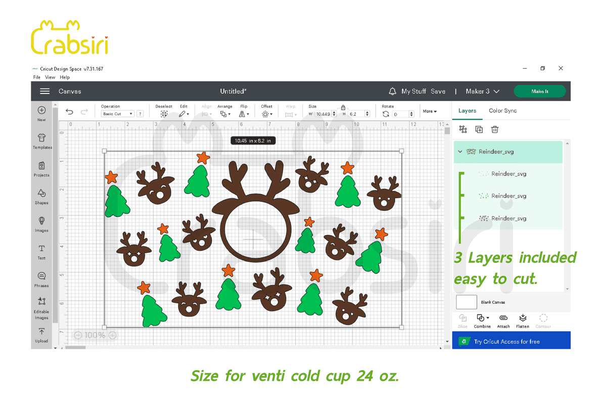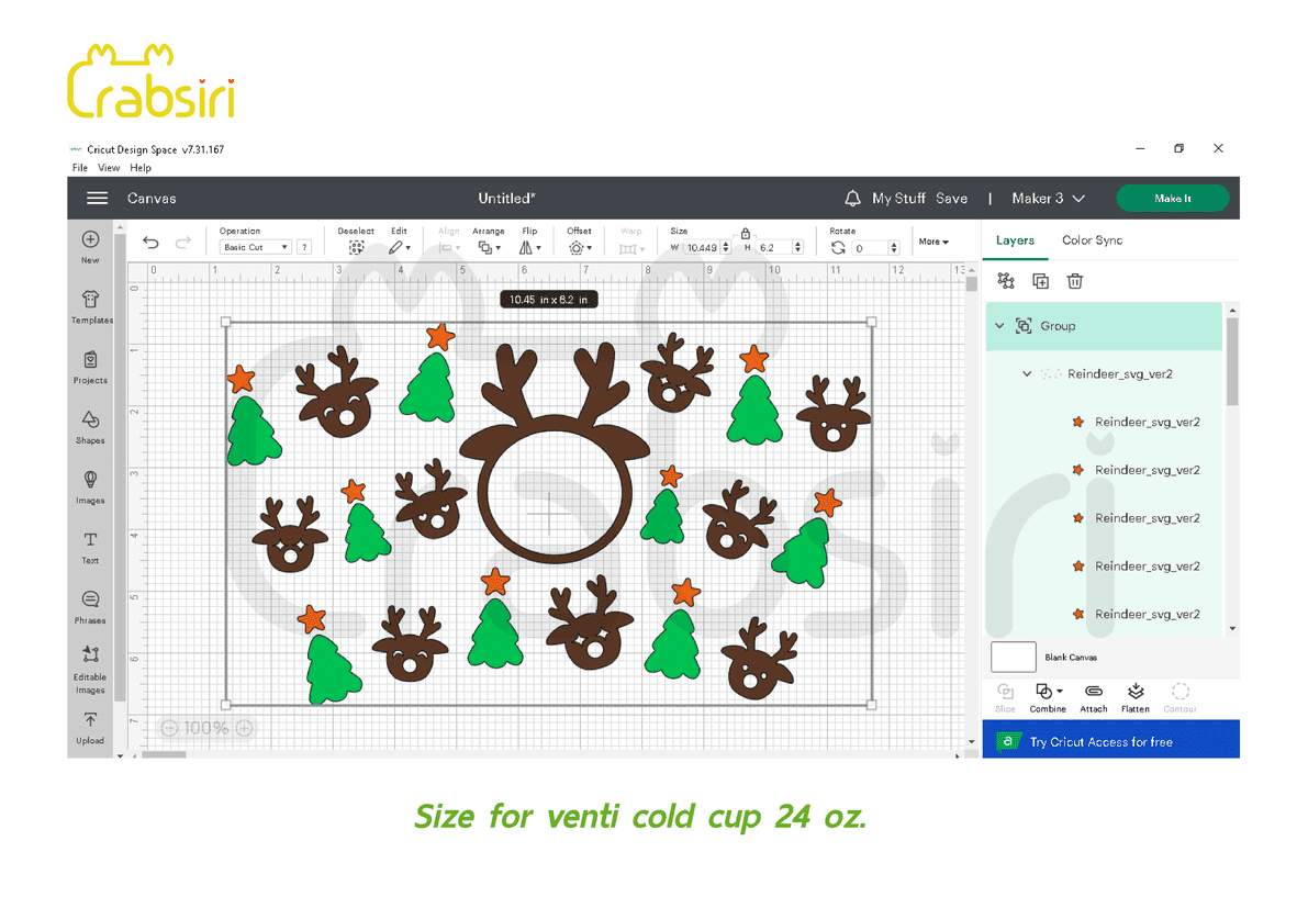 Reindeer Venti Cold cup 24oz SVG Reindeer full wrap for Starbucks Venti cold cup 24 oz. Digital File download : SVG, PNG, DXF. Size : 10.45 x 6.2 Inches. You must log in to submit a review. Username or Email Address Password Remember Me