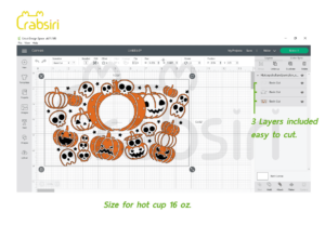 Skull and pumpkin full wrap for Starbucks Hot cup 16 oz.