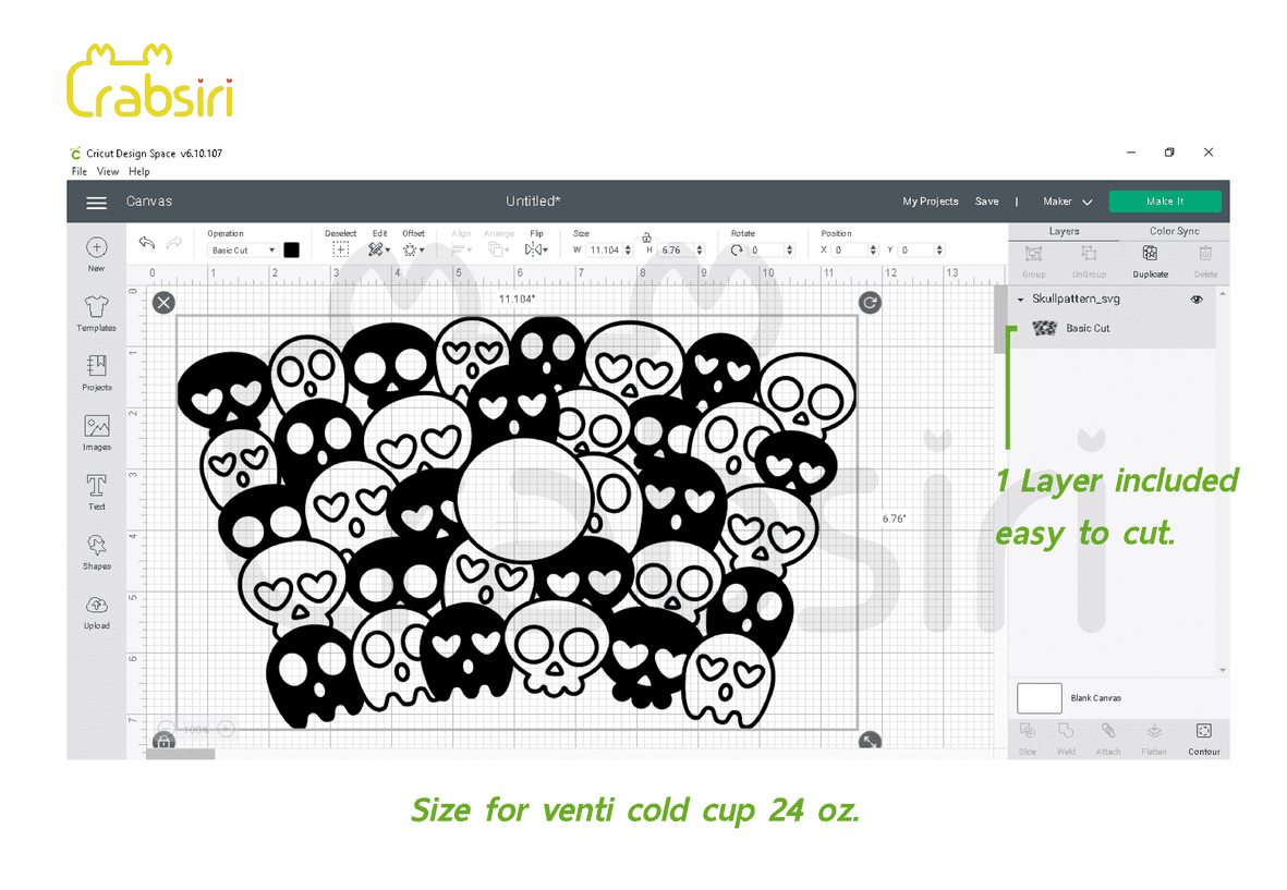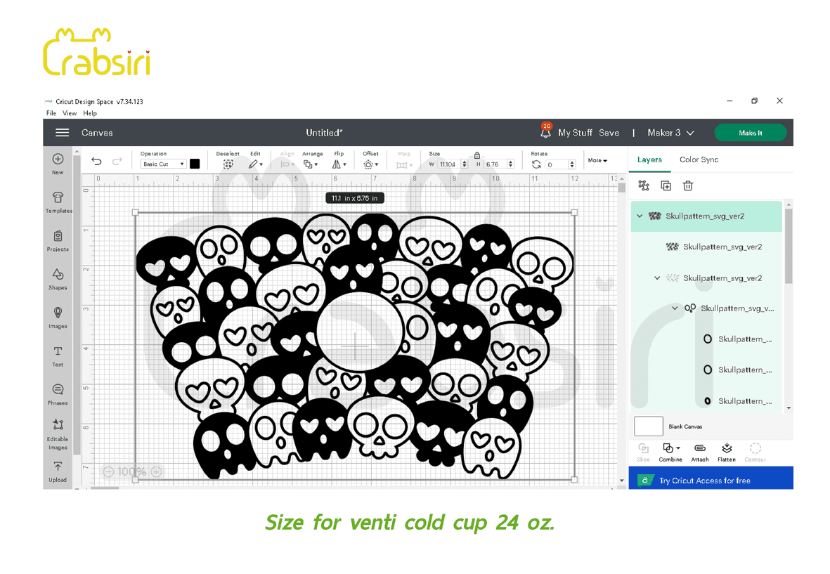 Skull Pattern full wrap for Starbucks Venti cold cup 24 oz.